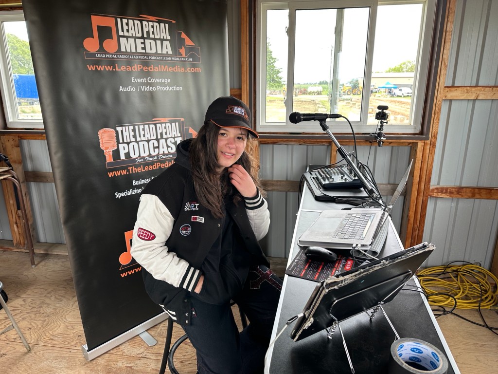 Lead Pedal Radio had a new cohost at the Woodstock Truck Show. Granddaughter of host / producer Bruce Outridge was on site helping out in a number of areas from video to photography and then jumped right in when asked to cohost on the microphone. Nevaeh began helping by announcing sponsor information during the Indie Show and quickly progressed into DJing the music later in the weekend on the Road Show.